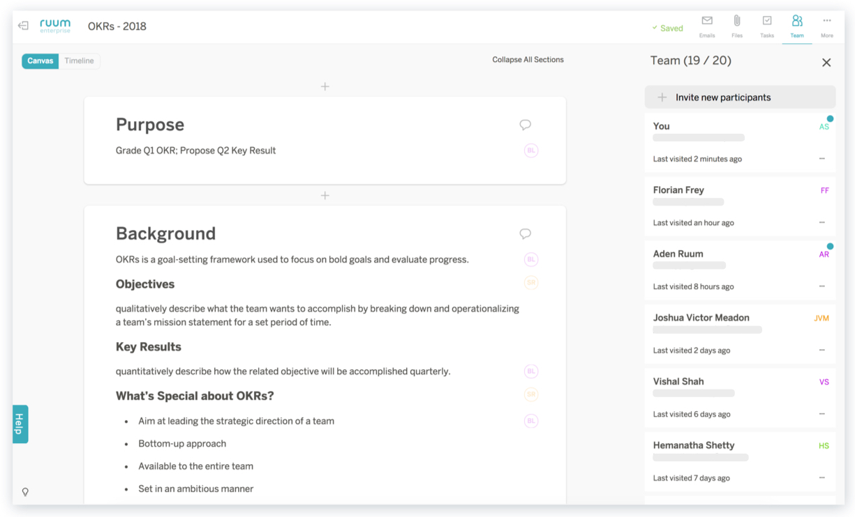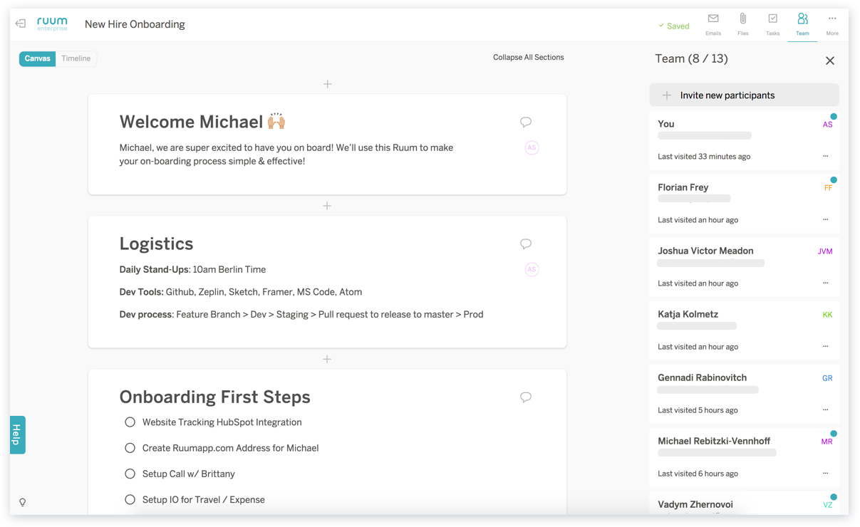 It’s all in the planning! Create a project plan that allows you to hire the most outstanding talent. Plan and conduct successful interviews, onboard new employees and coordinate with other departments regarding HR campaigns like a pro. Ruum helps you track, plan and coordinate projects and teams from one central place, making it easy to follow processes and connect the appropriate people accordingly. Most importantly, it lets you focus on core tasks.